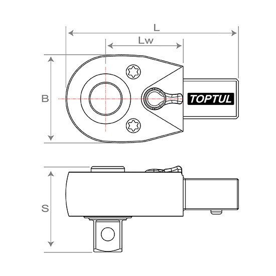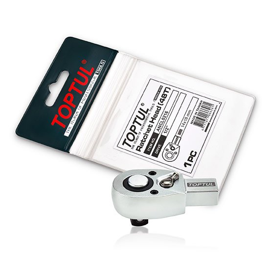 ITEM NO: ANCL series Chrome molybdenum steel ratchet head 14x18mm rectangular fitting For use with interchangeable head torque wrenches Safety spring pin locking mechanism ensures positive retention Quick-change design for fast and easy insertion Durable 48 teeth ratchet drive mechanism: Forward/ Lock/ Reverse (3-way) Quick release button ensures firm socket retention and easy socket removal